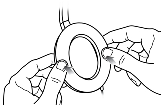 Attach the mounting flange so it sits smoothly and uniformly onto the entire earcup, and snap it gently into place by pressing around the entire ear cushion